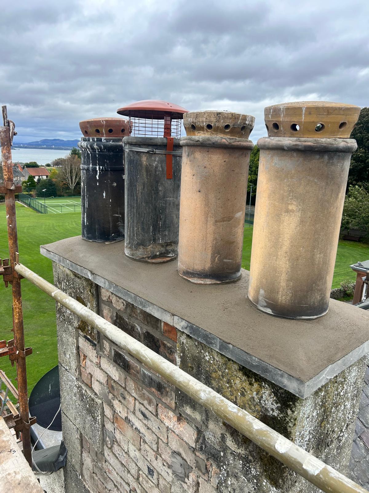 Repoint and restore chimney brickwork to prevent moisture ingress and structural damage.